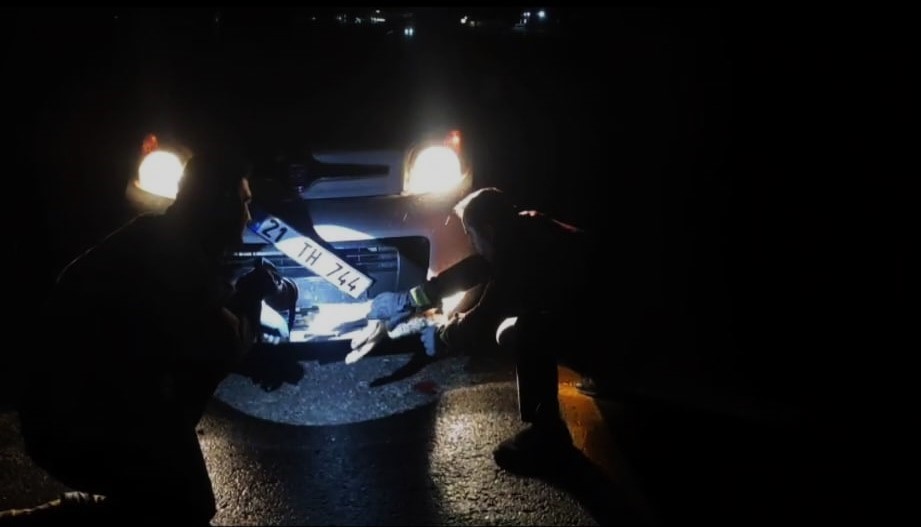 Batman’da çarpma sonucu aracın tamponuna sıkışan tilki kurtarıldı
