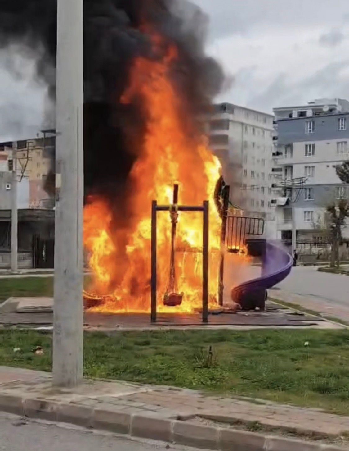 Edinilen bilgilere göre, olay Cudi Mahallesi’nde bulunan bir çocuk parkında meydana geldi. Parkta bulunan plastik kaydırak, henüz bilinmeyen bir nedenle yanmaya başladı. Alevleri fark eden vatandaşlar durumu 112 Acil Çağrı Merkezi’ne bildirdi. İhbar üzerine olay yerine itfaiye ve polis ekipleri sevk edildi. Kısa sürede bölgeye ulaşan itfaiye ekipleri, yanan kaydırağa müdahale ederek yangını kontrol altına alıp söndürdü. Yangında can kaybı ya da yaralanma yaşanmazken, parkta maddi hasar meydana geldi.