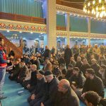 Batman’da Ramazan ayı dolayısıyla teravih namazına giden vatandaşlar kürsüde bağımlılık ile mücadele ekiplerini dinledi.