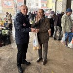 Pazar alışverişi yapan vatandaşlarla birebir iletişim kurulan etkinlikte, naylon poşet kullanımının azaltılması maksadıyla pazar filesi dağıtıldı.