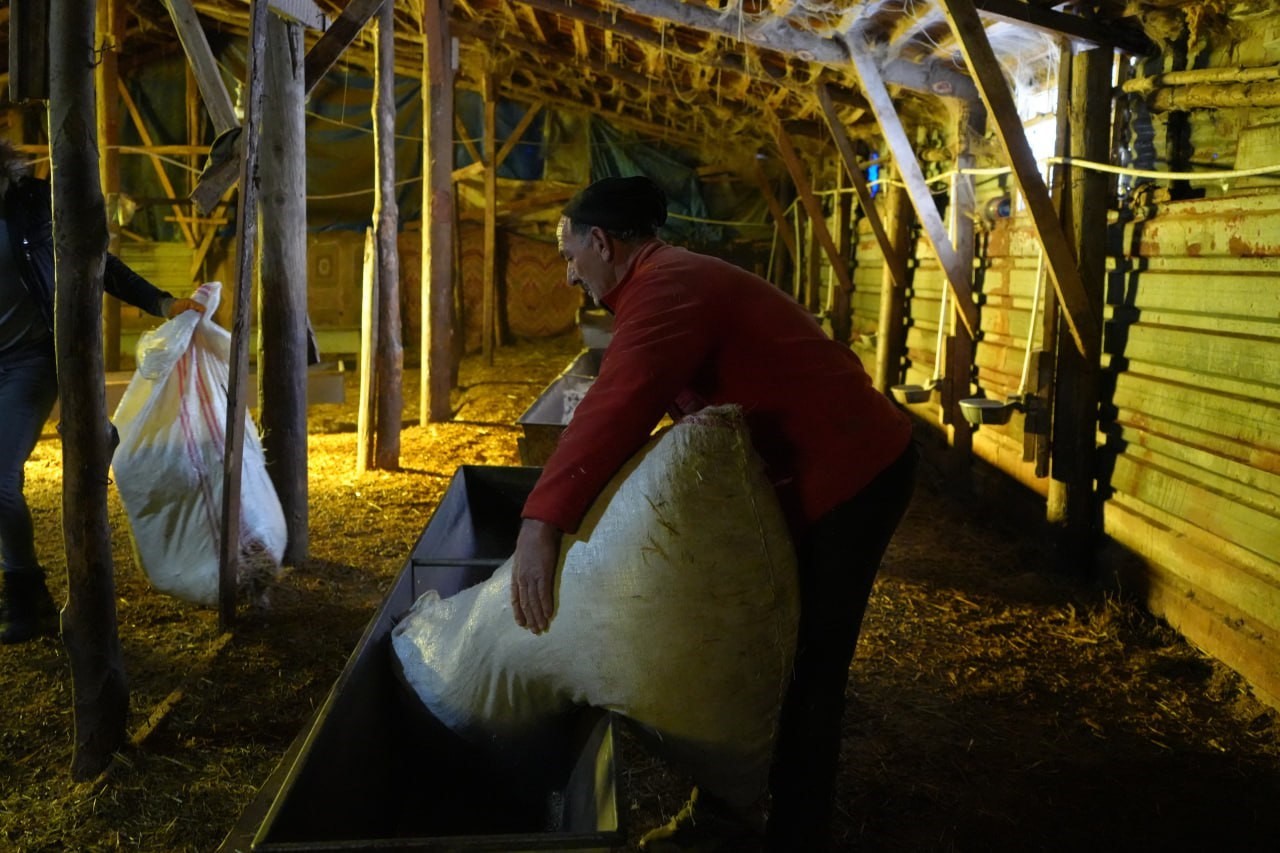 “Hayvanların yemini, suyunu verdik, içeri aldık. Biraz hava aldılar, ben de işlerimi hallettim. Yukarıdaki hayvanlara da bakacağım. Sonra sobamızı yakacağız, çayımızı demleyeceğiz. Sabah yine aynı tempoyla devam edeceğiz. Yorulma yok, dinlenme yok; kafa rahat olduktan sonra sıkıntı yok.”