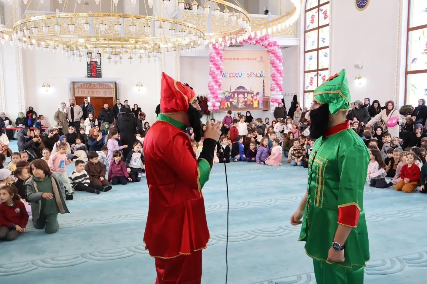 Ramazan ayı etkinlikleri ile Bayburt’un kadim on beşi” geleneği dolayısıyla gerçekleştirilen programda, Kur’an kurslarında eğitim gören çocuklar Hacı Kıyasi Şentürk Camii’nde bir araya geldi. Etkinlikte çocuklar, Hacivat ile Karagöz, Nasrettin Hoca canlandırması ve geleneksel oyunlarla eğlenceli vakit geçirdi.