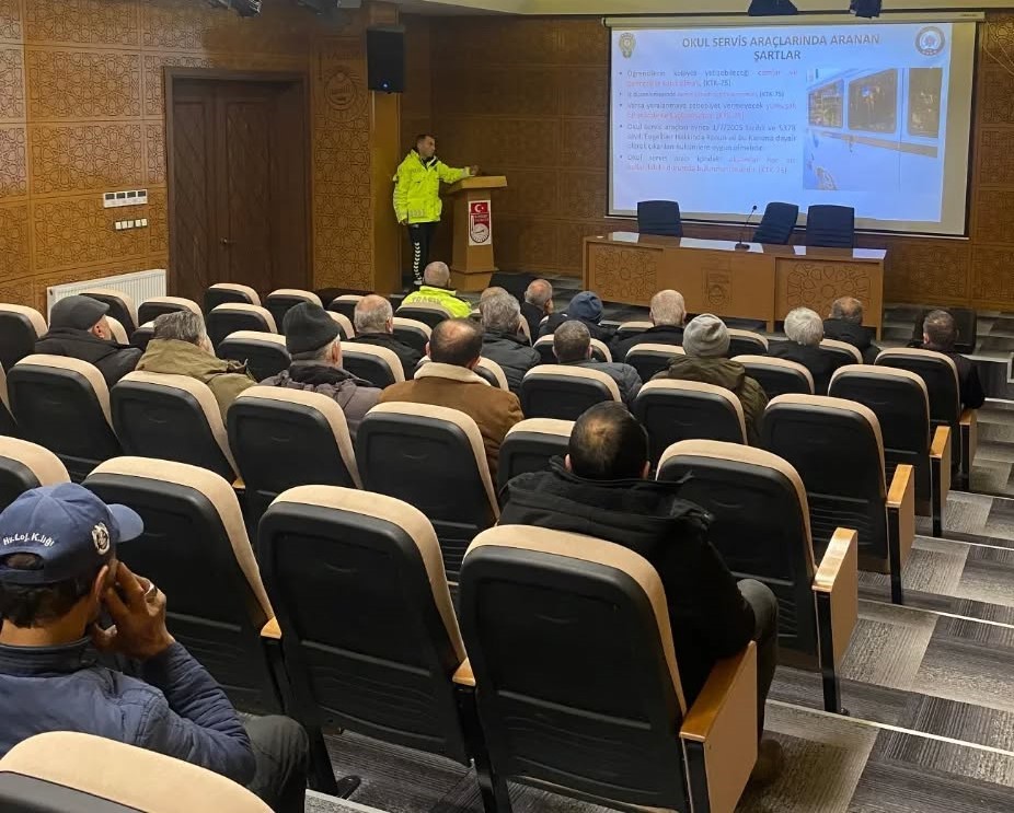 Bayburt Valiliği toplantı salonunda düzenlenen eğitim programında, taşımalı eğitim kapsamında görev yapan servis sürücülerinin uyması gereken kurallar trafik polisleri tarafından detaylı bir şekilde anlatıldı. Sürücülere, okul servis araçlarında aranan şartlar, sürücülerin sorumlulukları, öğrenci iniş-binişlerinde dikkat edilmesi gereken hususlar ve trafik kurallarına uyum konularında bilgilendirme yapılarak, Okul Servis Araçları Yönetmeliği’nde yer alan kriterler hatırlatıldı.