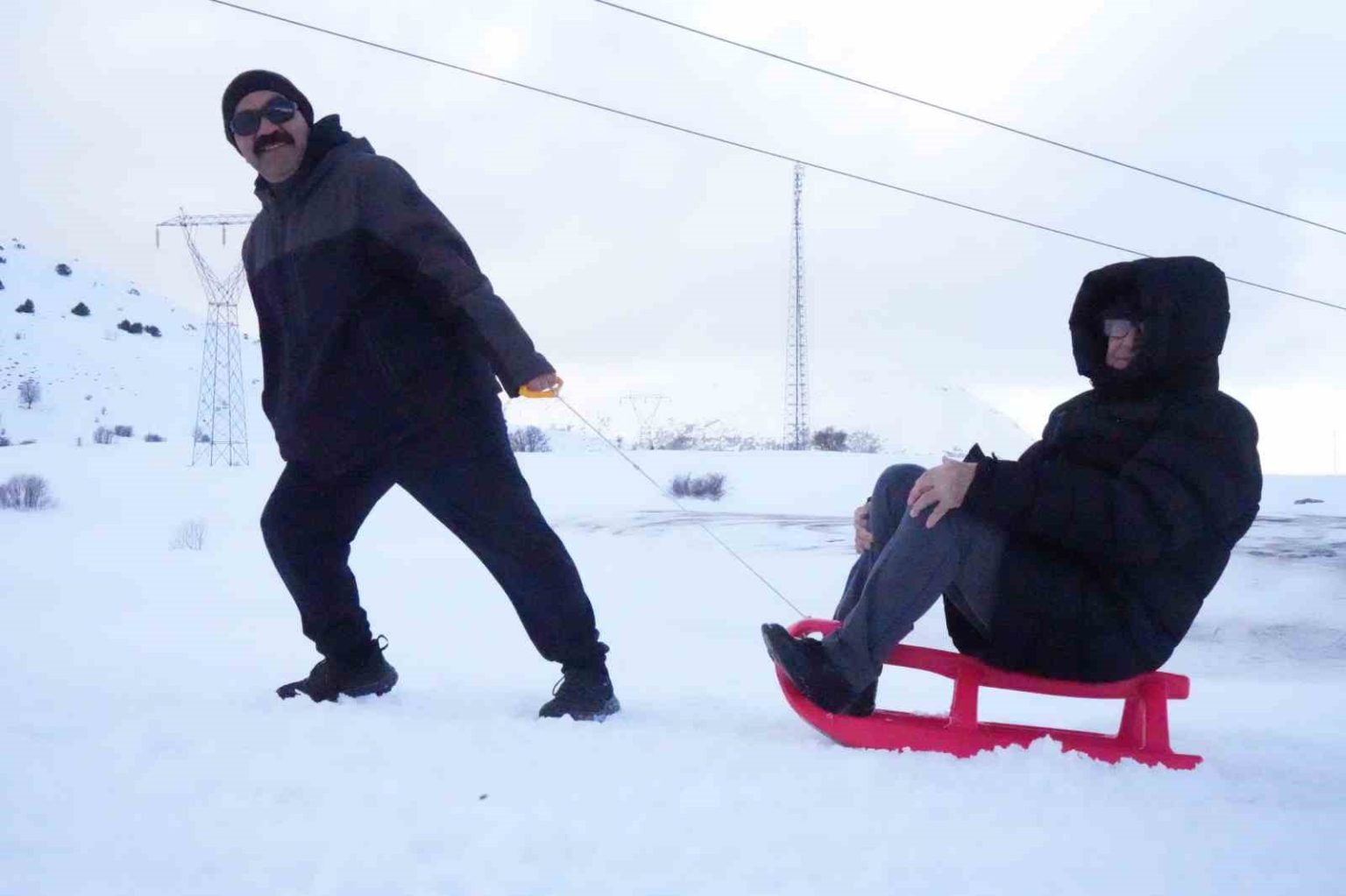 Gençlik ve Spor İl Müdürü Adem Köse’nin kullandığı kar motorunun arkasına binen huzurevi sakinleri, dağ gezisine çıktılar. Kar üzerinde voleybol maçı yapan grup, renkli görüntüler oluşturdu. Soğuk havaya aldırış etmeyen huzurevi sakinleri gönüllerince eğlenerek, karın tadını çıkardı.