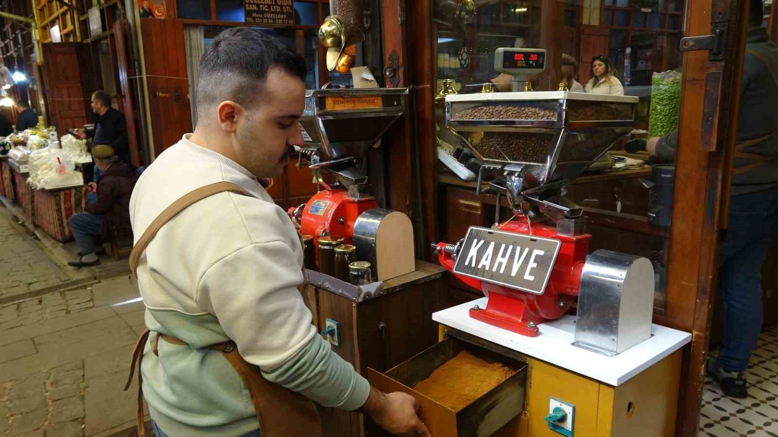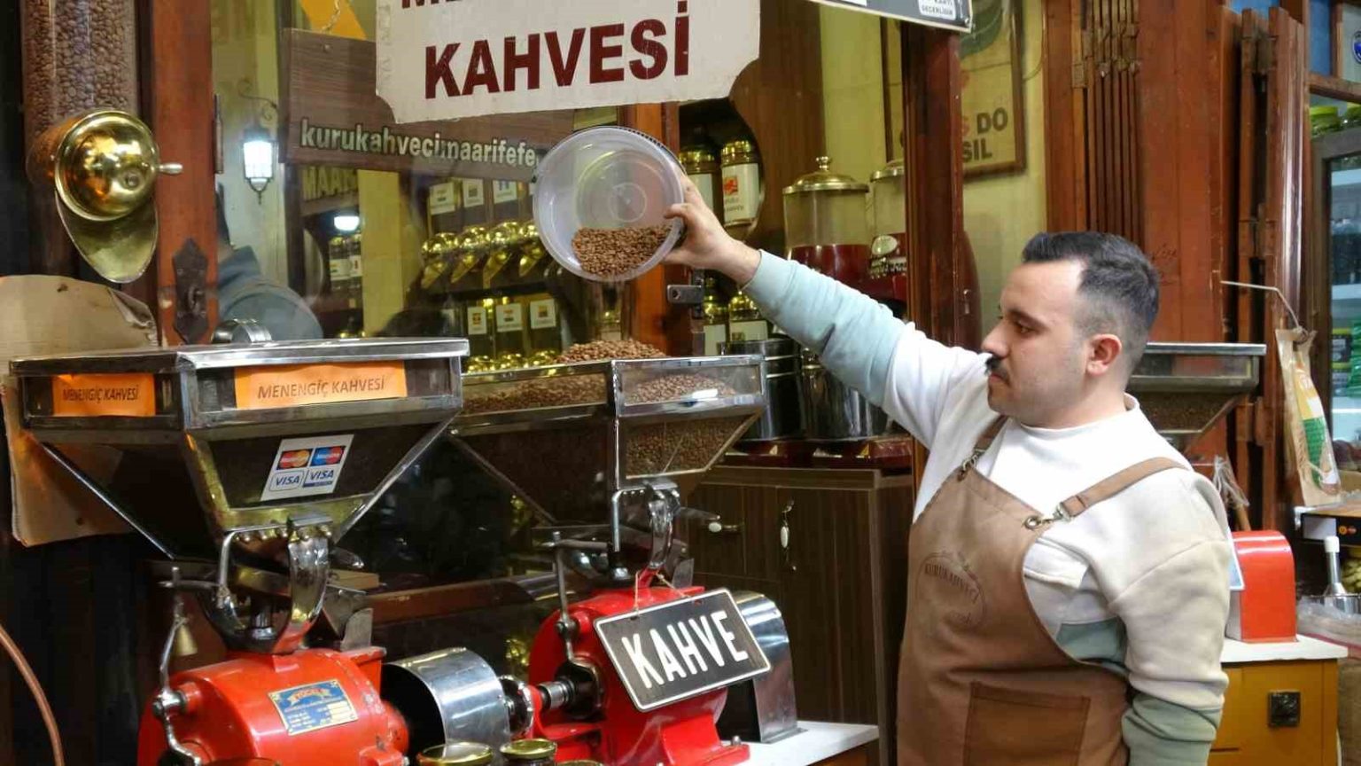 Tarihi Bakırcılar Çarşısı’nda kahve çekimi ve satışı yapan Berat Aydın, Türk ve menengiç kahvesinin kentte köklü bir kültüre sahip olduğunu belirtti.