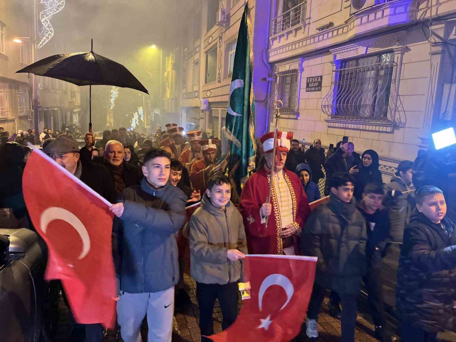 İstanbul Bayrampaşa’da Ramazan ayının ilk teravih namazının ardından “11 Ayın Sultanını Karşılama Töreni” düzenlendi. Fener Alayı programında bayrak ve meşalelerle yürüyüş yapan vatandaşlara mehter takımı eşlik etti.