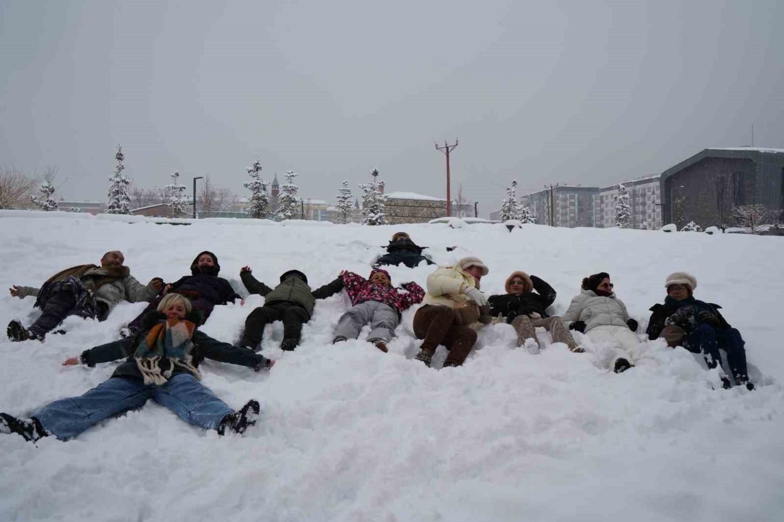 Kristal karın keyfini kar içinde yuvarlanarak yaşayan Belçikalı turistler, Üçkümbetler’de Türklerden oluşan baika bir turist grubuyla kar topu savaşı yaptı. Kar topu savaşının sonunda dostluk mesajları verildi.