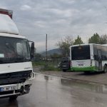 Bursa’da belediye otobüsü ile nakliye kamyonunun çarpıştığı trafik kazasında 2 sürücü yaralandı.