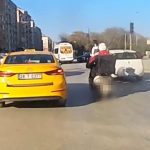 Eskişehir’de bir motosikletli, benzini biten bir başka motosikleti ayağıyla iterek destek olmaya çalışırken dengesini kaybederek kaza yaptı.