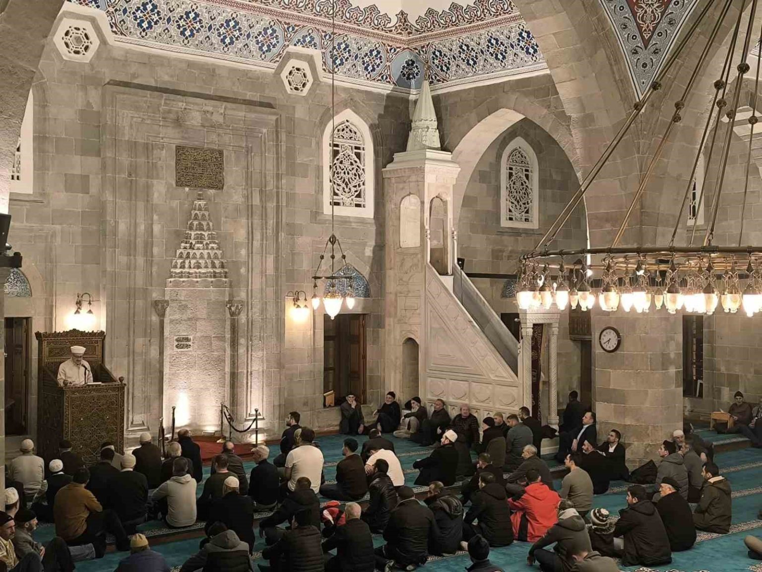 Erzurum’da rahmet, mağfiret ve arınma gecesi olan Berat Kandili, şehir genelindeki camilerde düzenlenen programlarla büyük bir huşu içerisinde kutlandı. Erzurumlular, ellerini semaya açarak bu mübarek gecenin feyzinden yararlanmak için camilere akın etti. Kandil coşkusunun kalbinin attığı duraklardan biri, şehrin sembol mekanlarından tarihi Lalapaşa Camii oldu. Akşam namazının ardından dolmaya başlayan camide, Kur’an-ı Kerim tilavetleri ve Mevlid-i Şerif ile manevi atmosfer zirveye ulaştı.
