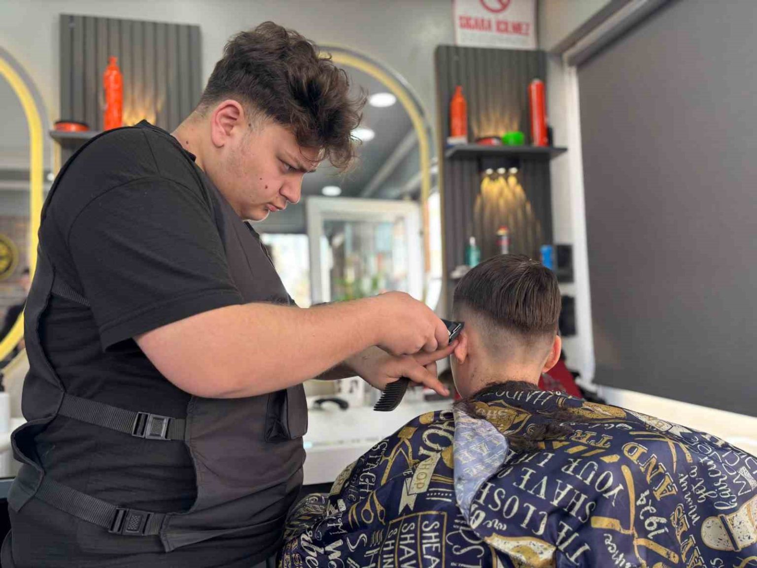 Kent genelindeki berberlerin hepsinde yoğunluk olduğunu ifade eden Şimşek, “26 yıldır bu mesleğin içerisindeyim. 26 yıldır şahitlik ettiğim bayram öncesi yoğunluğuna bugün de devam ediyoruz. Bayramlar, bizim mesleğimizin en yoğun ve en özel dönemlerinden biridir. Vatandaşlar bayrama bakımlı ve hazır girmek istediği için özellikle bayrama bir gün kala, yoğunluk yaşanıyor. Hem hijyen kurallarına hem de müşterilerimizin sıra durumlarına dikkat ediyoruz. Bu yoğunluk esnaflar için bir berekettir. Biz, bu bereketin devam etmesini istiyoruz. İnşallah bu süreç, bizim arkamızdan gelen nesil için de devam eder. Bayram öncesi saat yok, sabaha kadar devam ediyoruz. Meslektaşlarımızın hepsinde ciddi bir yoğunluk yaşanıyor. Birbirine yakın olan esnaf arkadaşlar, yoğunluğa göre birbirlerine destek veriyorlar. ‘Ben doluyum, aşağıda bir berber var, oraya gidin’ gibi birbirlerine yardımcı oluyorlar” şeklinde konuştu.