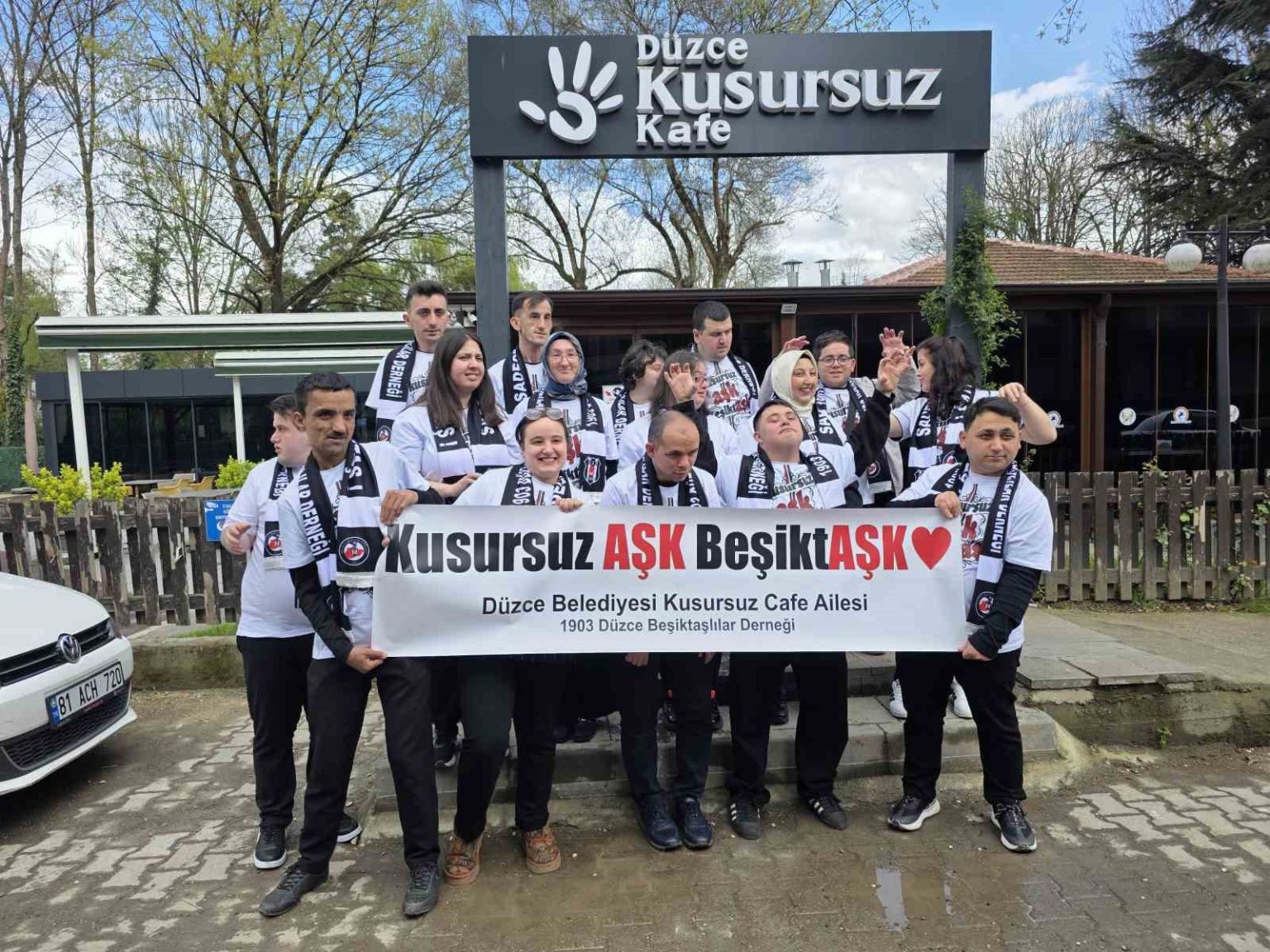 Düzce Kusursuz Kafe’de çalışan down sendromlu, zihinsel ve bedensel engelli bireyler, 1903 Düzce Beşiktaşlılar Derneği’nin organizasyonu ile unutulmaz bir gün yaşadı. Beşiktaş yönetimi, 20’si engelli 30 kafe çalışanı ile dernek üyelerini ağırladı. ‘Kusursuz Aşk, Beşiktaşk’ sloganı ile düzenlenen gezide özel bireyler, ilk olarak İstanbul’daki Beşiktaş müzesini gezerek, Beşiktaş’ın kuruluş tarihi, kazandığı kupalar ve başarıları hakkında bilgiler aldılar. Özel bireyler, ardından Beşiktaş-Antalyaspor futbol karşılaşmasını tribünlerde kendilerine ayrılan koltuklarda izlediler. Stadyumda maç izlemenin heyecanını yaşayan özel bireyler unutulmaz bir gün yaşadılar.