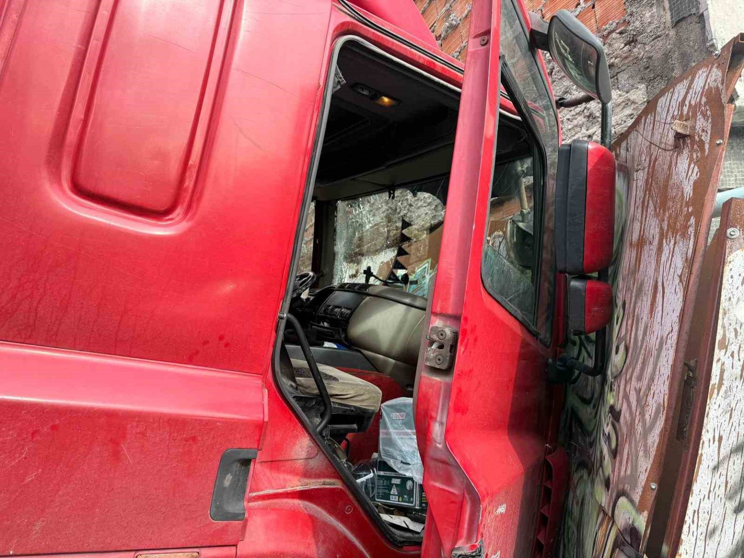 Olay sonucu dükkanında hasar meydana gelen emlakçı Seyhan Demir ise, “Aracı boşalttılar, gördüğünüz demirleri indirdiler. Araç duruyordu, şoför indi ve aşağıya doğru yürüdü. Muhtemelen kendine yol bulmak için tırdan indi. O anda tırın kaydığını gördüm. Kaldırımdan demirlere girdi, sonra binaya çarptı ve durdu. İki tane tabelamız yıkıldı. Sokakta şans eseri kimse yoktu” dedi.