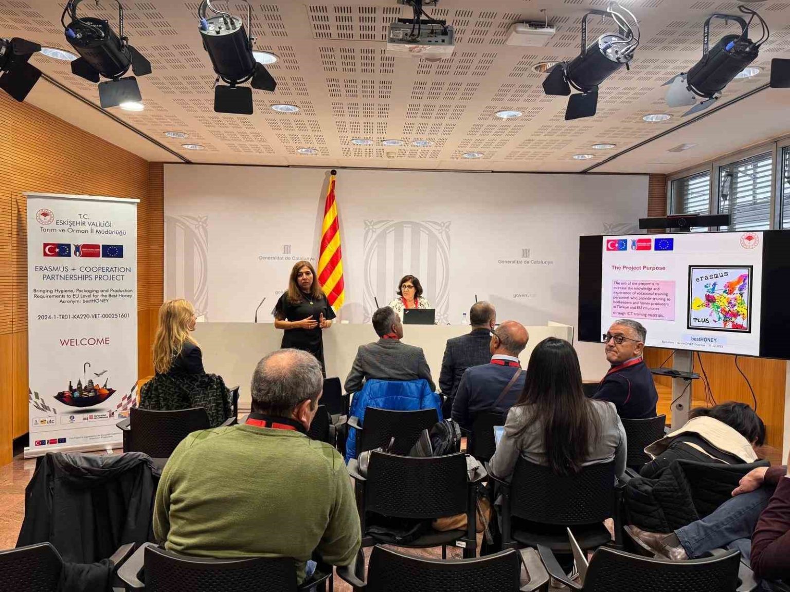 İkinci ve üçüncü günlerde, Barselona’daki Generalitat de Catalunya’da proje toplantıları ve eğitim oturumları düzenlendi. Tüm ortaklar önceden hazırlanmış bir gündeme dayalı olarak, arı sağlığı, hastalık önleme, üretim standartları ve arıcılıkta ekonomik sürdürülebilirlik konularına odaklanan sunumlar gerçekleştirdi. Bu oturumlar katılımcıların ulusal uygulamaları karşılaştırmalarına, ortak zorlukları belirlemelerine ve Avrupa düzeyinde yenilikçi ve aktarılabilir çözümleri tartışmalarına imkan sağladı. Toplantı sırasında, ev sahibi kurumu temsilen Rosa Altisent Rosell, Erasmus+ projelerinin kurumsal işbirliğini, karşılıklı öğrenmeyi ve uzun vadeli ortaklıkları teşvik etmedeki önemini vurguladı. Ayrıca gelecekte benzer girişimlere devam etme konusundaki ilgisini dile getirdi. Eskişehir İl Tarım ve Ormancılık Müdürü ve Proje Yetkilisi Yüksel Çil, Erasmus+ işbirliğinin katma değerini ve projenin hem AB Üye Devletleri hem de ortak ülkeler için somut çıktılarının önemini vurguladı. Projenin arıcılık sektöründe kapasite geliştirme, inovasyon ve kalite iyileştirmeyi desteklemedeki rolüne dikkat çekildi.