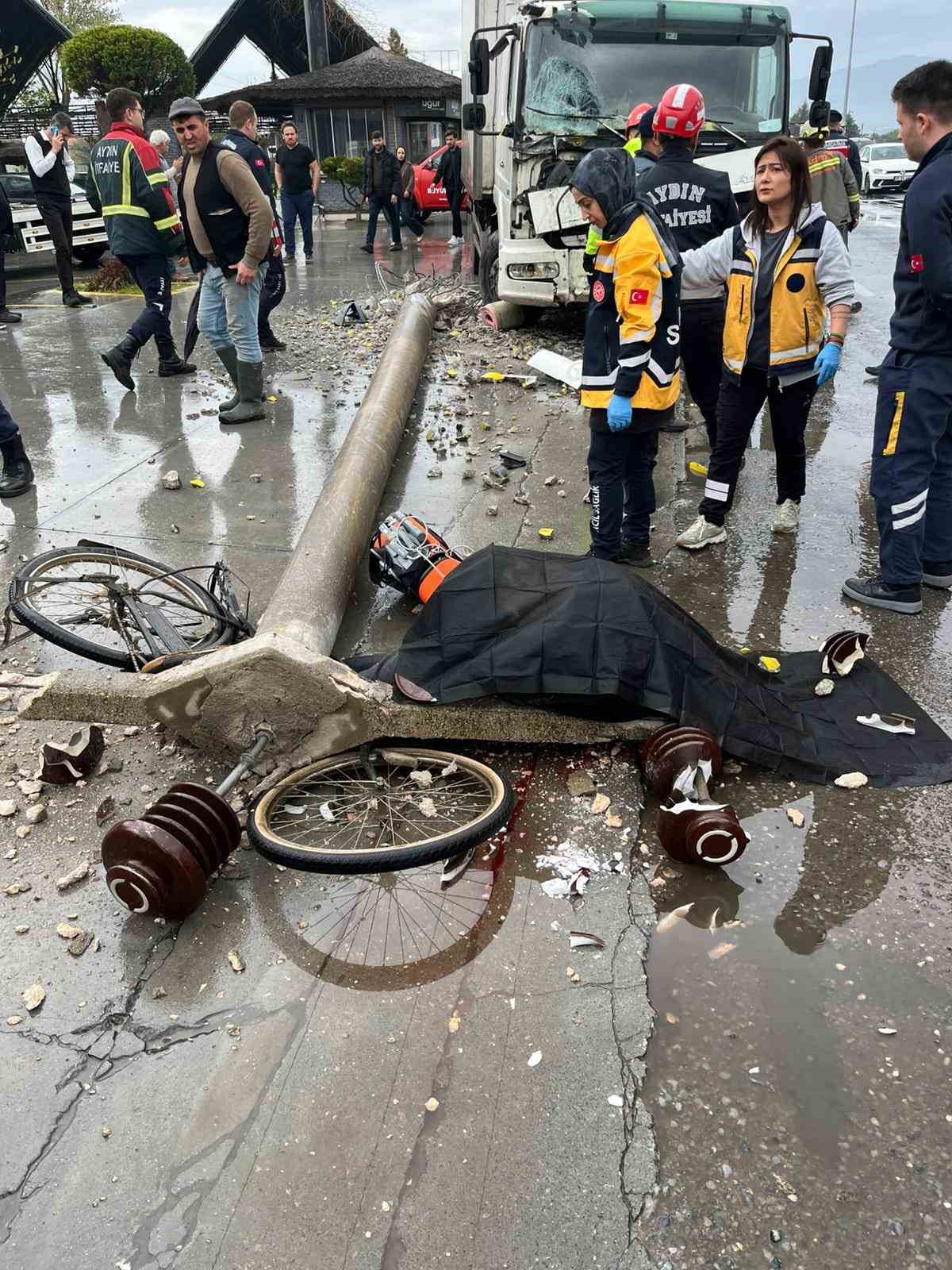 Aydın’ın Köşk ilçesinde meydana gelen trafik kazası sonrası devrilen beton direğin altında kalan bisiklet sürücüsü hayatını kaybetti.