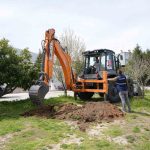 Bilecik Belediyesi’ne Türkiye Belediyeler Birliği tarafından hibe edilen kazıcı yükleyici kepçe, ilk kez okulda kullanıldı.