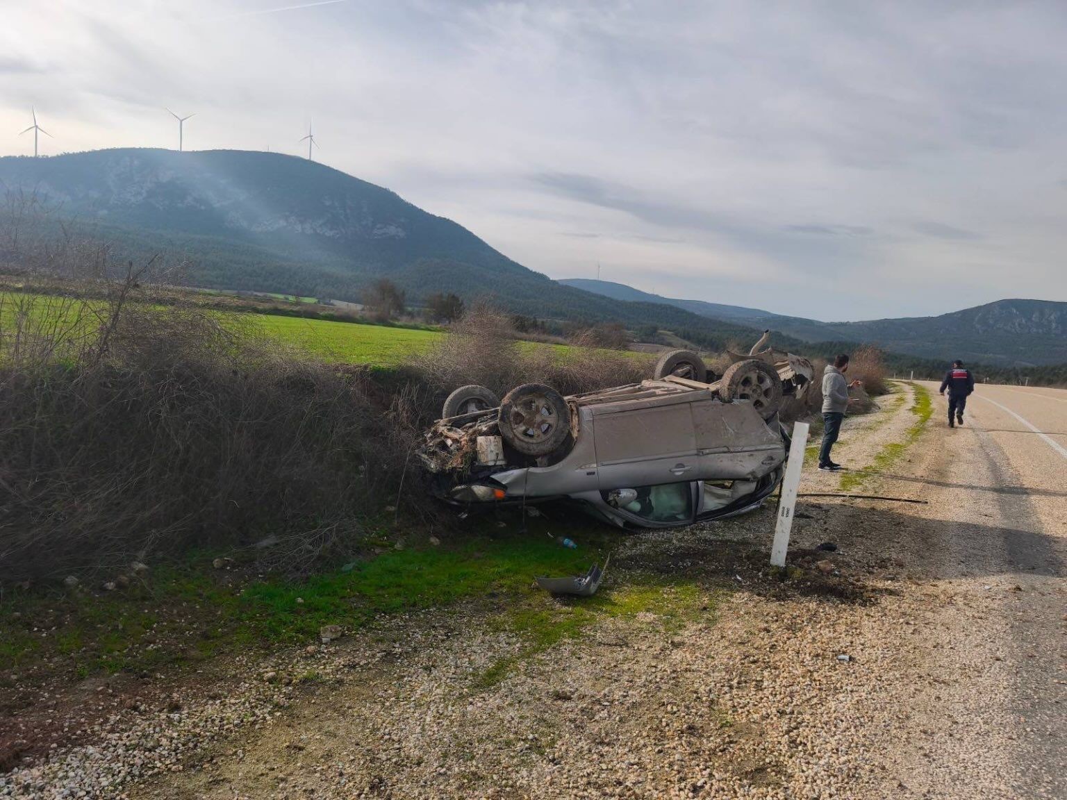 Kaza; Bilecik’in Gölpazarı ilçesi Vezirhan Karayolu Küçükyenice Köyü mevkiinde meydana geldi. İlçe merkezinden Vezirhan Beldesine seyir halindeki 54 LD 579 plakalı otomobil sürücüsü Furkan K. bir anda aracın direksiyon hakimiyetini kaybetti. Kontrolden çıkan araç takla atarak durabildi. Meydana gelen trafik kazasında otomobil sürücüsü Furkan K. yaralandı. Yaralı olay yerine gelen acil servis ekiplerince yapılan ilk müdahalenin ardından Bilecik Eğitim ve Araştırma Hastanesine sevk edilmiştir.