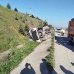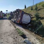 Bilecik’te seyir halinde kontrolden çıkan tır devrildi; sürücüsü yaralandı.