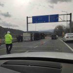 Bilecik’in Bozüyük ilçesinde kontrolden çıkan tır devrildi.