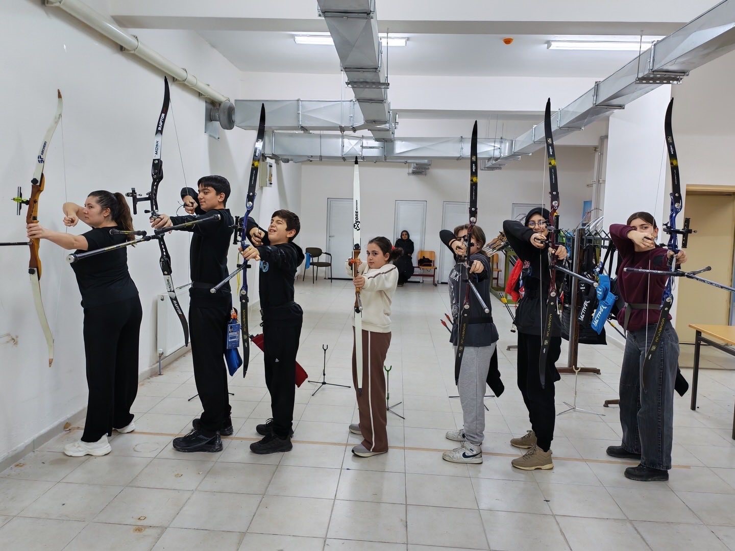 Bilecik Gençlik ve Spor İl Müdürlüğü bünyesinde faaliyet gösteren Spor Okulları kapsamında okçuluk branşında antrenmanlar devam ediyor. Antrenmanlar; duruş, tutuş ve nişan alma tekniklerinin doğru temeller üzerine inşa edilmesiyle başlarken, sporcular nefes kontrolü ve odaklanma çalışmalarıyla hedefe konsantre olmayı öğreniyor. Atış tekrarlarıyla istikrar ve isabet oranlarını artıran sporcular, uzman antrenörler eşliğinde gerçekleştirilen çalışmalarda disiplin, sabır ve özgüven kazanıyor.