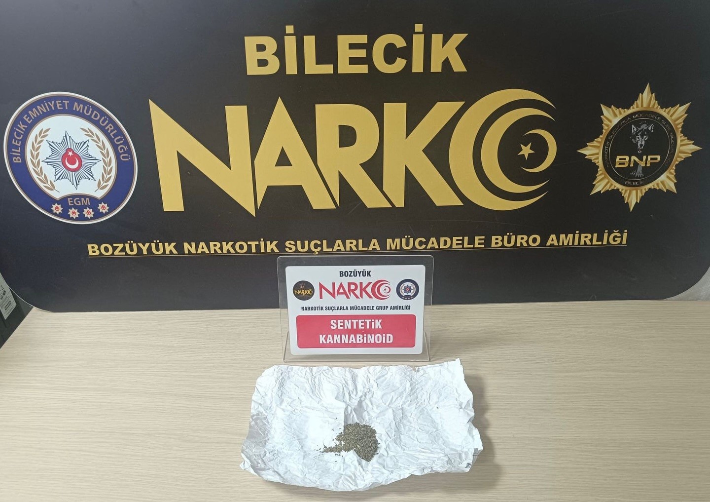 Edinilen bilgilere göre, Bozüyük İlçe Emniyet Müdürlüğü ekipleri tarafından uyuşturucu ile mücadele kapsamında çalışma yapıldı. Yapılan çalışmalarda muhtelif miktarda sentetik kannabinoid maddesi ele geçirildi. Operasyon kapsamında 1 şahıs yakalanarak gözaltına alınırken, şüpheli hakkında adli işlem başlatıldı.