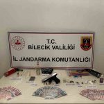 Edinilen bilgilere göre, Bilecik’te torbacılarla mücadele kapsamında İl Jandarma Komutanlığı İstihbarat Şube Müdürlüğü, KOM Şube Müdürlüğü, NSM Şube Müdürlüğü ve Söğüt İlçe Jandarma Komutanlığı ekiplerince Söğüt ilçesinde operasyon düzenlendi. Operasyon kapsamında 2 şüpheliye ait 1 adres ve 1 araçta arama yapıldı. Yapılan aramalarda 15 gram metamfetamin, 9 adet payp, 8 adet sentetik ecza, 1 gram kubar esrar, 8,5 gram kenevir tohumu, 30 gram sentetik kannabinoid, 25 mililitre aseton, 5 adet uyuşturucu kullanma aparatı, 1 adet ruhsatsız tabanca, 2 adet şarjör, 4 adet 9 milimetre tabanca fişeği, 11 bin 225 TL nakit para ve 1 adet hassas terazi ele geçirildi.
