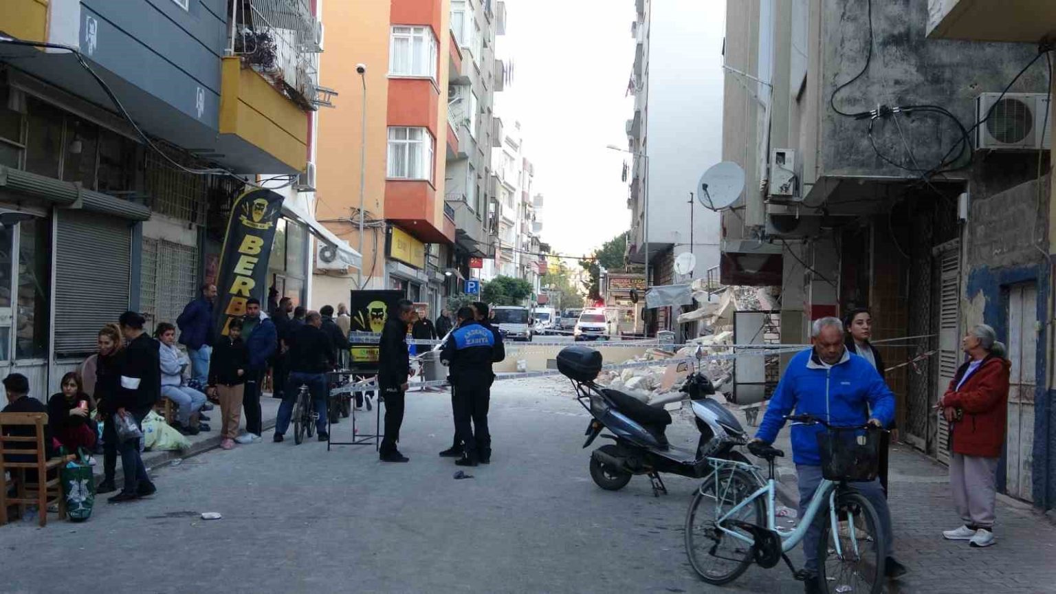 Mersin’de eski bir binanın yıkımı sırasında bitişik binanın birinci katı zarar gördü. Bina sakinleri, tedbir amaçlı tahliye edildi.