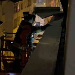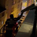 Binadan sarkan metal parça için itfaiyeden gece operasyonu