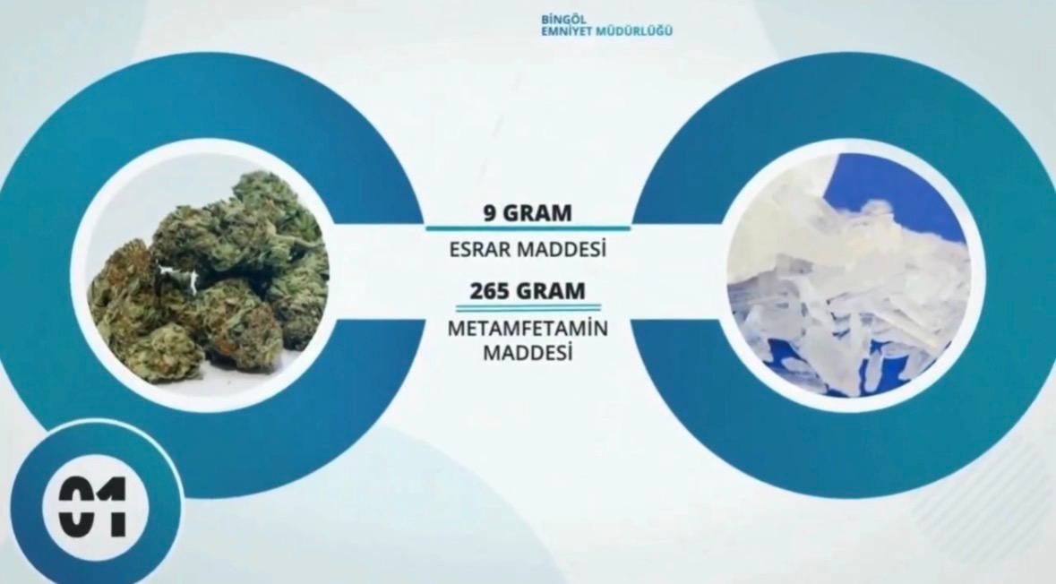 Gerçekleştirilen operasyonlarda ayrıca farklı nitelik ve sayılarda suç unsuru materyaller ele geçirildi. Çalışmalar kapsamında 9 gram esrar, 265 gram metamfetamin, 7 gram kokain ile 2 adet kesici alet emniyet güçlerince muhafaza altına alındı.