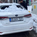 Bingöl’de çatıdan düşen kar otomobile zarar verdi