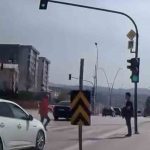 Bir adım hayat kurtardı… Kırmızı ışıkta yola atladı, facia teğet geçti