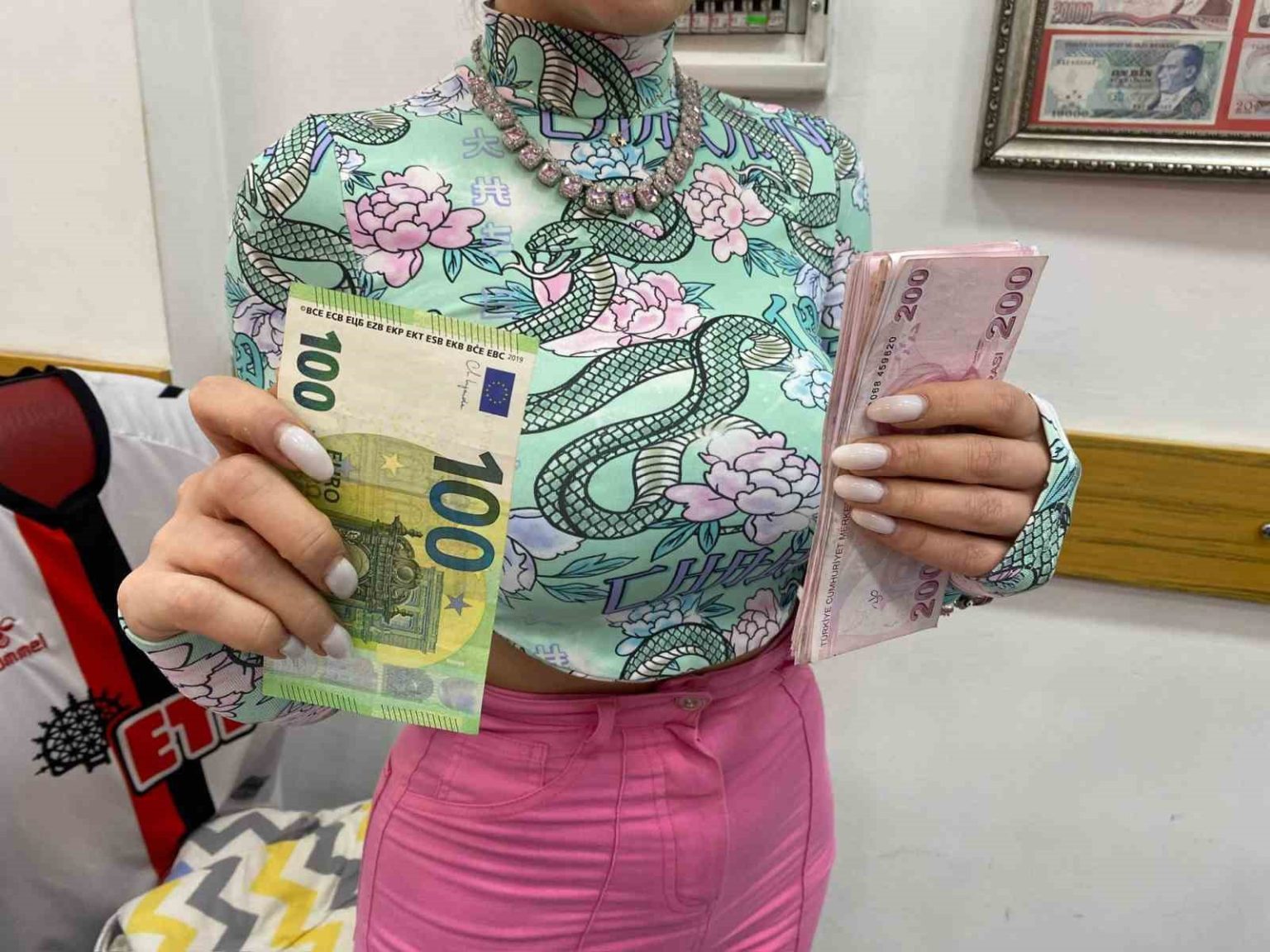 Olay, Odunpazarı ilçesi Arifiye Mahallesi Köprübaşı Caddesi üzerindeki bir döviz bürosunda yaşandı. Geçtiğimiz pazar günü iş yerine gelen bir erkek müşteri, çalışan Lütfiye Topkaya’nın iddiasına göre 400 euro bozdurmak istemiş. Ancak 500 euro değerinde 5 bin 160 TL fazladan para veren Topkaya, karşısındaki müşteriye seslenerek mağduriyetini giderilmesini rica etti.