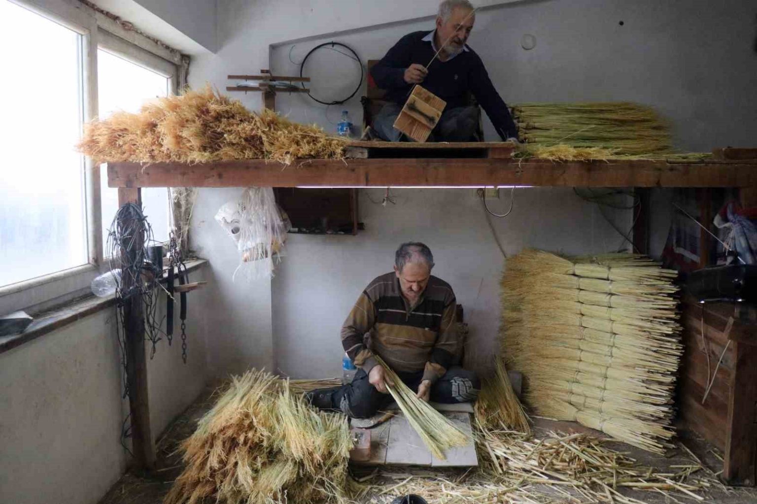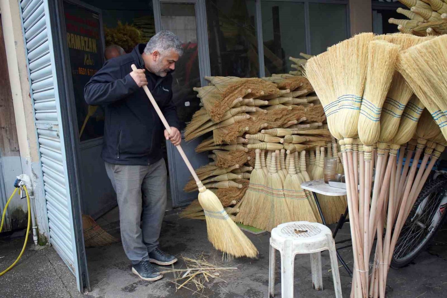 46 yıldır ustalık yaptığını belirten Selahattin Burucuoğlu, “Bizim yaptığımız iş süpürgenin imalatı. Ot olarak geliyor, işlendikten sonra bizlere gelir. Dört aşamadan geçer ve süpürge haline gelir. Vatandaşlar bunu bahçesinde, balkonunu yıkarken kullanıyor. Eskiden alışık olan insanlar evinde bulunduruyor. Hanımlar, halıları dövüp arkasında bu süpürgelerle süpürürlerdi şimdi o durum kalmadı. Robotlar, elektrikli süpürgelerle süpürüyorlar, yıkama zamanı gelince de halı yıkamacılara veriyorlar” dedi.