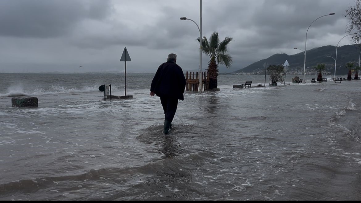 Marmara Denizi’nde etkili olan fırtına nedeniyle oluşan dev dalgalar, Bursa’nın Gemlik ilçesinde sahil yolunu trafiğe kapattı. Deniz suyu işletmelerin kapılarına kadar ulaştı, bazı bölgeler sular altında kaldı.