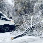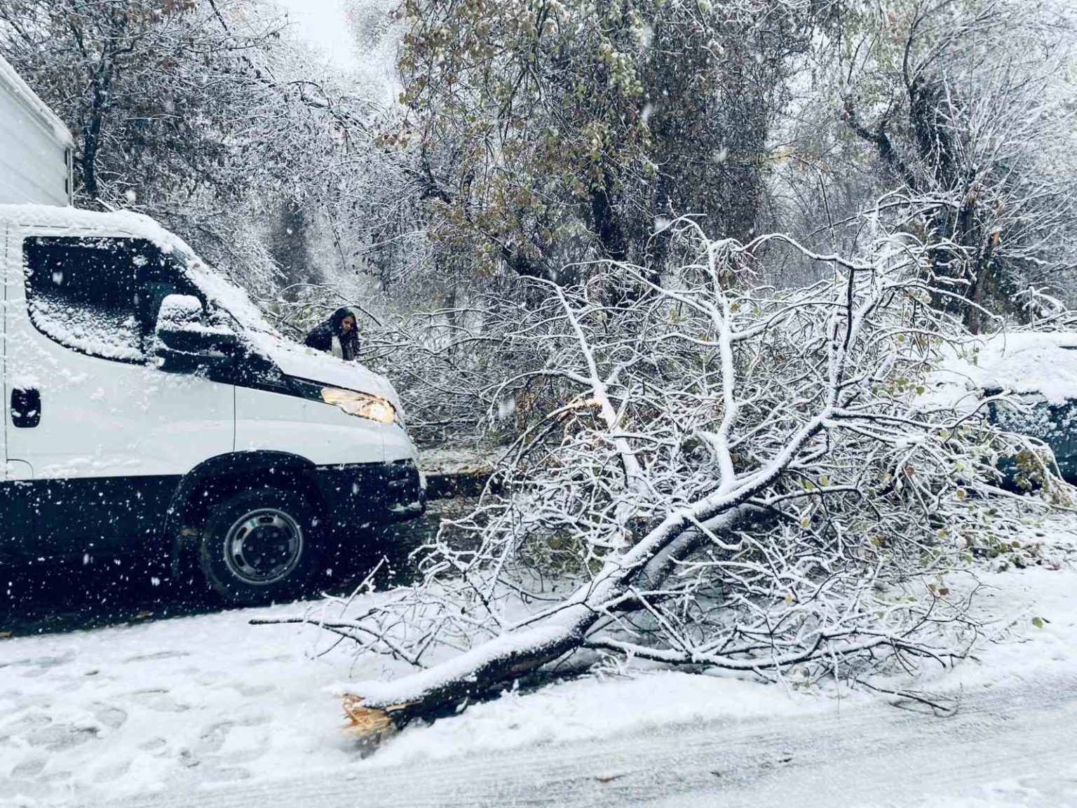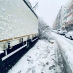 Şanlıurfa’da etkisini sürdüren kar yağışı nedeniyle Birecik ilçesinde birçok ağacın dalları koparak araçların üzerine düştü.