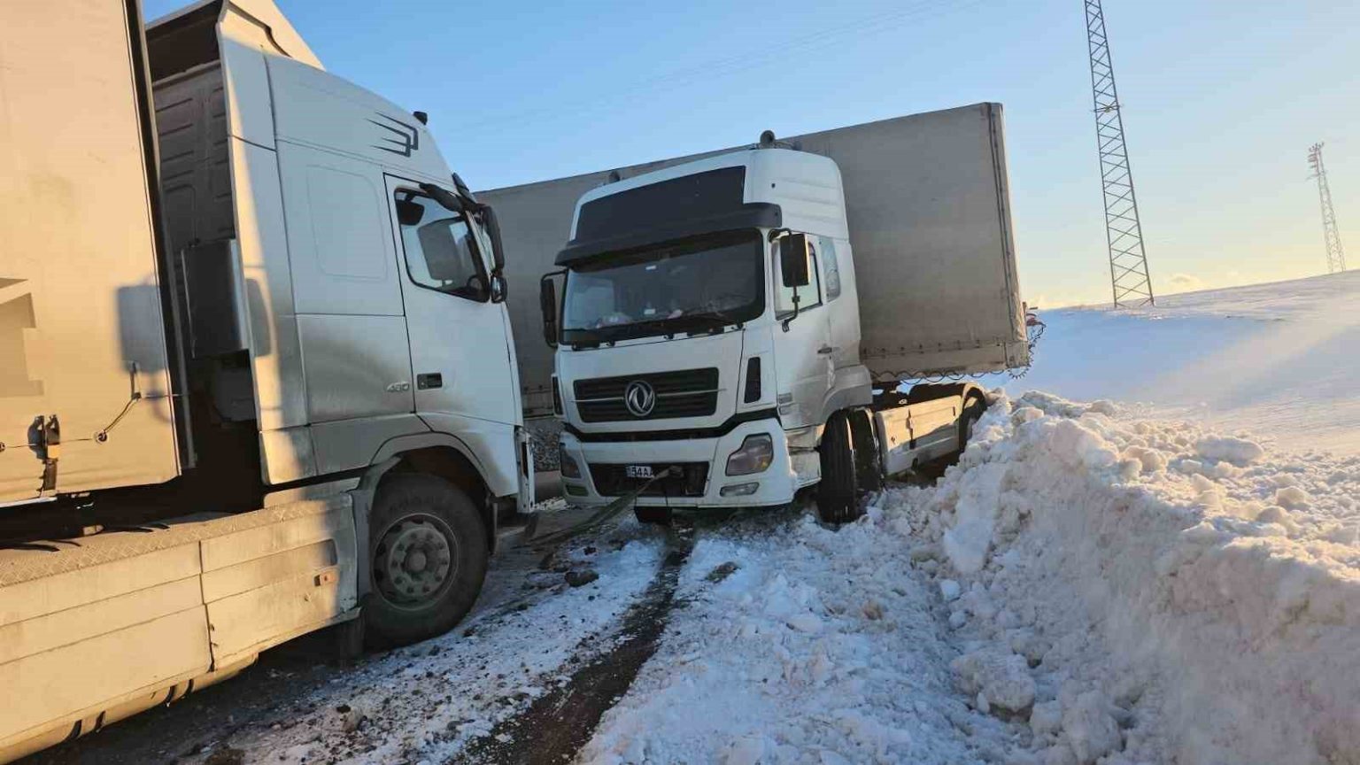 Adilcevaz’da buzlanan yolda kayan tır yolu kapattı