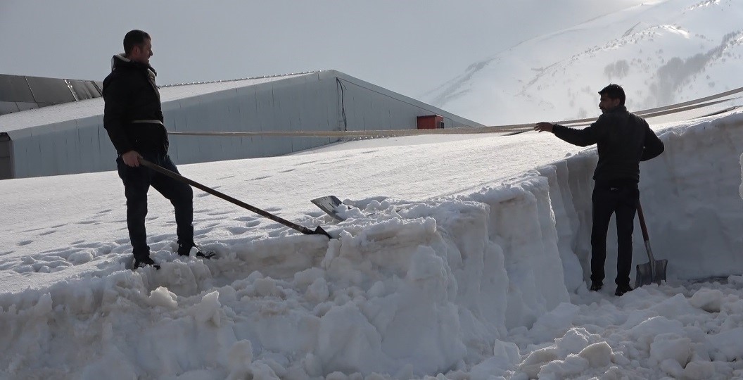 Yüksek binaların çatılarına çıkan vatandaşlar, önlem olarak kendilerine ip bağlayarak kar küreme çalışması yapması dikkat çekiyor. Kar yağışının durmasıyla birlikte Organize Sanayi Bölgesi (OSB) esnafı, vatandaşların can ve mal güvenliğini korumak amacıyla çatılarda kar temizliği çalışmalarına hız verdi.