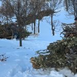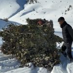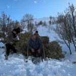 Bitlis’te yazın dağlık alanlarda toplanan yapraklı meşe dalları, kışın karlı yamaçlardan kızaklarla indirilerek hayvanlara veriliyor.