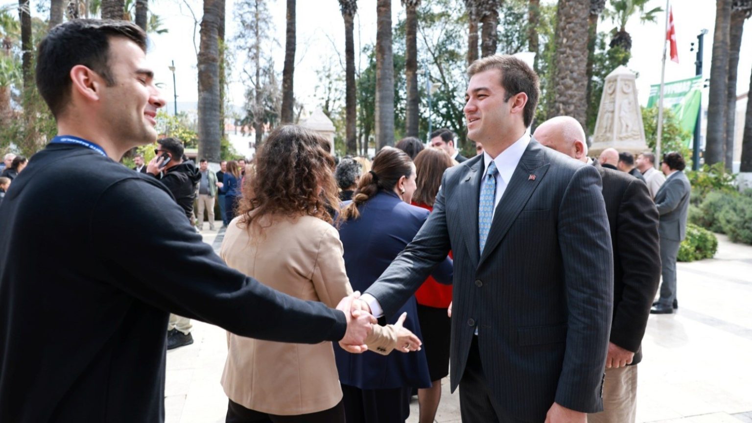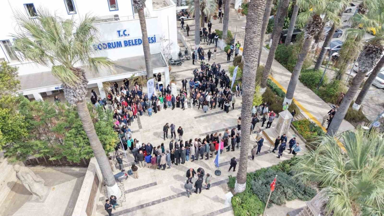 Bodrum Belediye Başkanı Tamer Mandalinci, Ramazan Bayramı dolayısıyla belediye binası önünde personelle bayramlaştı.