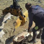 Bodrum’un Torba sahilinde kıyıya vurarak telef olan caretta caretta bulundu. Vücudunda ciddi deformeler olan deniz canlısı, büyüklüğü nedeniyle vinç yardımıyla sahilden kaldırıldı.