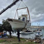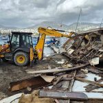 Bölgede ağır hasar almış sahipsiz tekneler ise iş makineleriyle parçalandı. Parçalanan bir teknenin altından çıkan Türk Bayrakları muhafaza altına alındı.