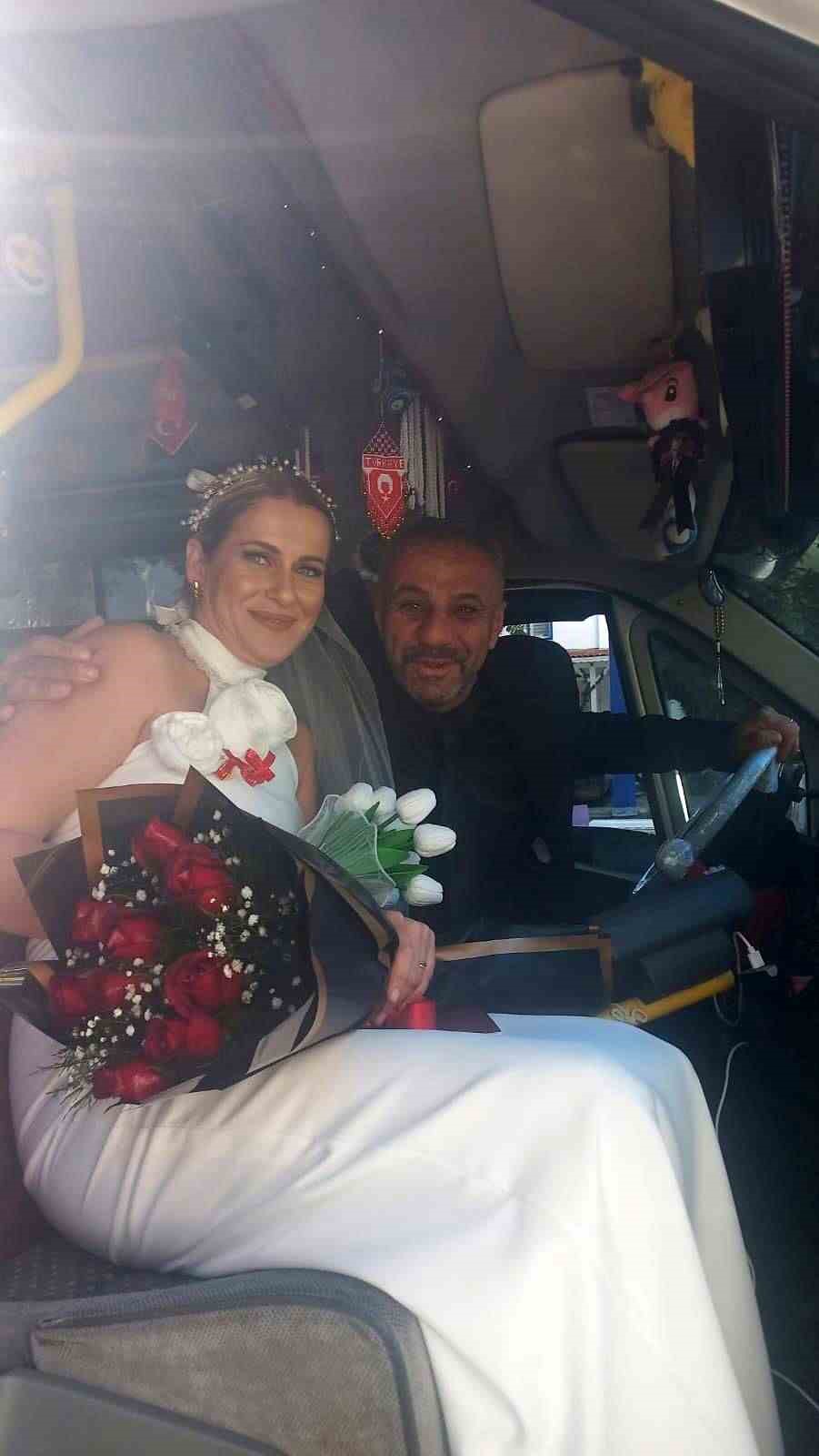 Yıllardır aynı dolmuşla çalıştıklarını söyleyen Umut ve Seminay Akkaya, “Bu araç bizim için sadece bir iş aracı değil, hayatımızın bir parçası. En mutlu günümüzde de onunla yola çıkmak istedik” dedi.