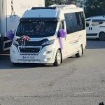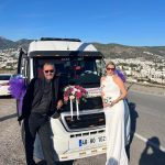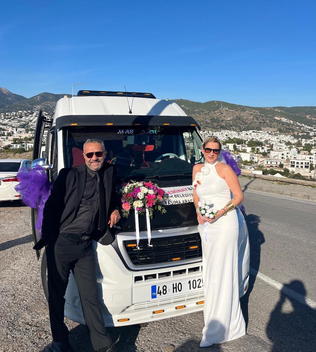 Bodrum Evlendirme Dairesi’nde kıyılan nikahın ardından kapıları çiçeklerle süslenen dolmuşa binen çift, konvoy eşliğinde Bodrum sokaklarında şehir turu attı. Renkli süslemeleri ve çalınan kornalarıyla dikkat çeken gelin dolmuşu, ilçe merkezinde adeta küçük bir şenlik havası oluşturdu.