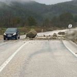 Bolu’da dağdan kopan kayalar yola indi: Sürücüler son anda kurtuldu