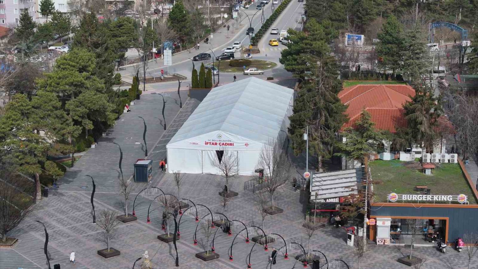 Bolu Belediyesi, Ramazan ayı öncesi hazırlıklarını tamamladı. Kentin en merkezi noktalarından biri olan Kent Meydanı’nda oluşturulan alana dev iftar çadırı yerleştirildi. Ramazan ayı boyunca her gün sıcak yemek ikramının yapılacağı çadırda, ihtiyaç sahipleri ile vatandaşlar bir araya gelecek. Hayırseverlerin katkılarıyla kurulan sofralarla, Ramazan ayının bereketinin ve dayanışma ruhunun tüm kente yayılması hedefleniyor.