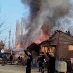 Bolu’da iki katlı ahşap ev ve ahır alev alev yandı