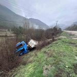Bolu’da tır şarampole devrildi, elektrik direği zarar gördü