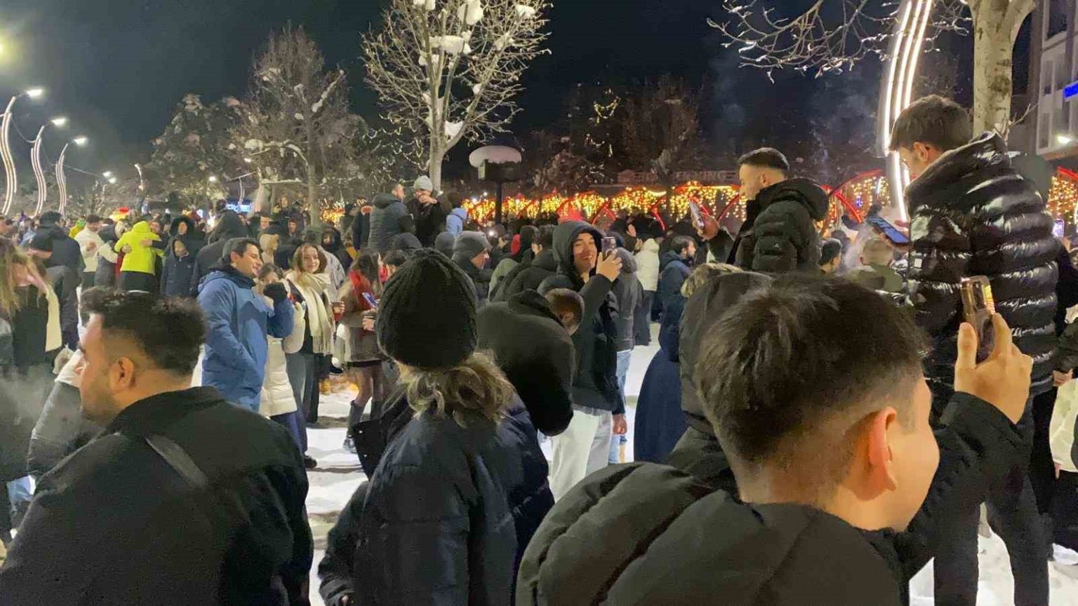 Bolu’da vatandaşlar 2026 yılına coşkuyla girdi. Kentin en işlek noktası olan İzzet Baysal Caddesi’nde toplanan yüzlerce kişi, soğuk havaya aldırış etmeden doyasıya eğlendi. Kimileri oyun havası oynayarak yeni yılı karşılarken, kalabalığın ortasında yapılan sürpriz evlilik teklifi renkli görüntülere sahne oldu.