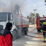 Bolu’da yol süpürme aracında yangın çıktı