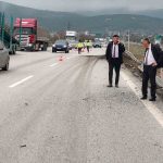Yolda güvenlik önlemleri alınırken, yolcu otobüsünde büyük çapta hasar meydana geldi.